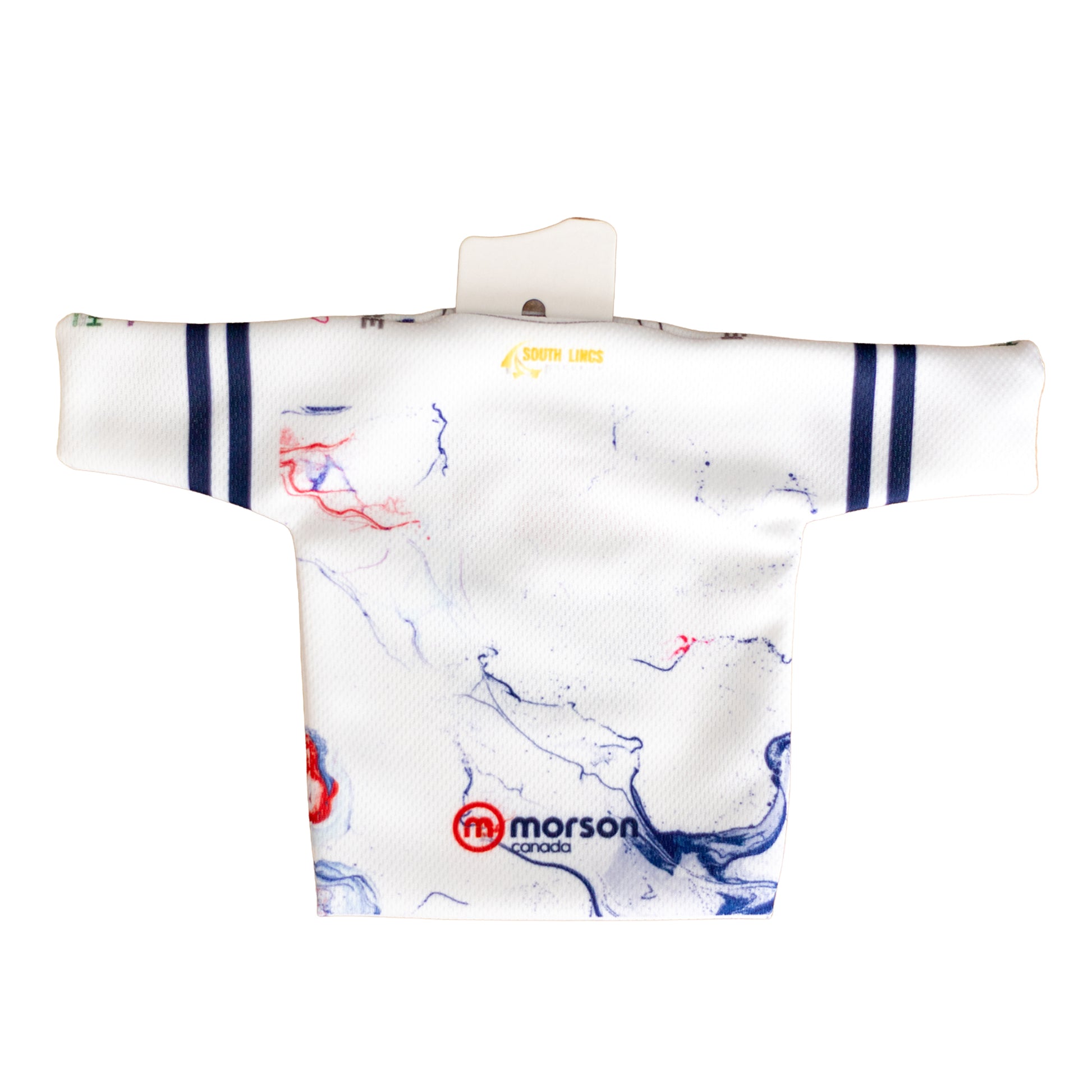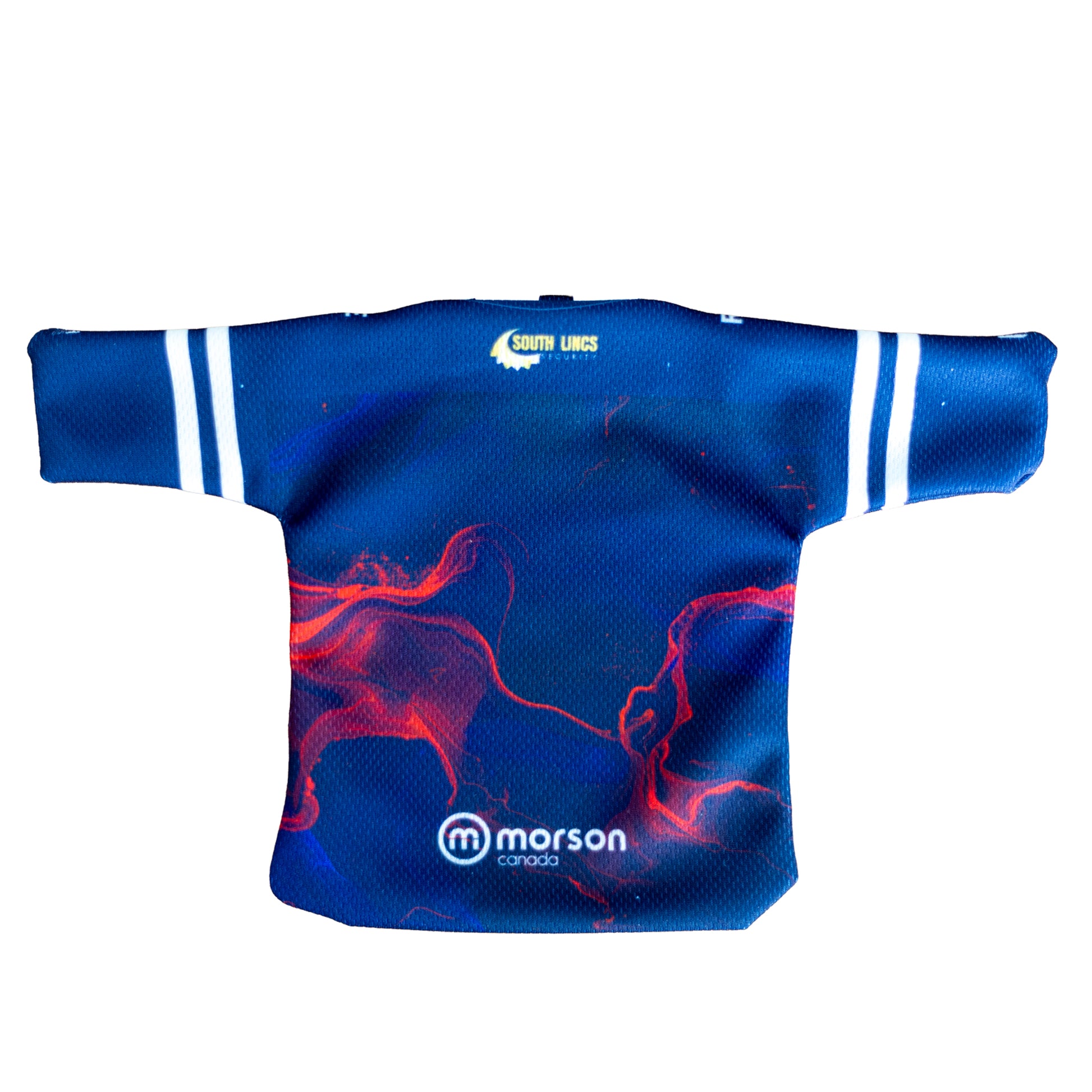 Mini replicas of the Peterborough Phantoms 2025/26 White, Blue and red Jerseys, with window sucker allowing them to take price of place on a car window or a bedroom window.